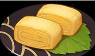 介绍:煎制而成的蛋料理。将搅拌均匀的蛋液先行调味,倒入锅中小火慢煎,卷至一边定型,再次倒入蛋液继续,重复至一定厚度,便可摆盘作为成品。是稻妻地区平凡而又亲切的美味。