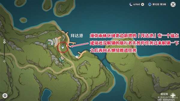 由于4.6版本新增的「拜达港」是有一个传送锚点的,因此建议还没解锁这个传送锚点的旅行者,先暂停任务来解锁一下锚点,之后再重新与朱斯蒂诺对话推进任务,省得以后还要特意跑来解锁。