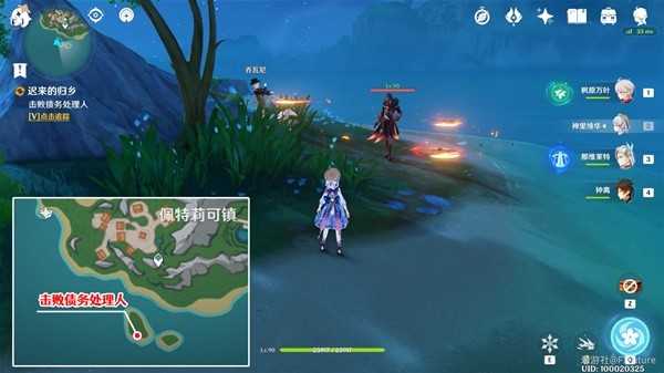 剧情结束后,跟随乔瓦尼到下图所示位置的小岛上,击败这里的债务处理人即可。