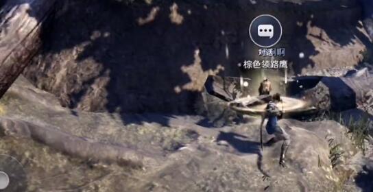 4、找到一株横在地上的大树,与上面的老鹰互动,就能获得宠物鹰了。