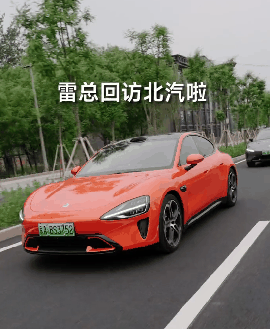 视频显示,雷军去北汽开的是辆熔岩橙配色的小米SU7,车队中还有雅灰、橄榄绿等不同颜色的SU7,十分帅气。
