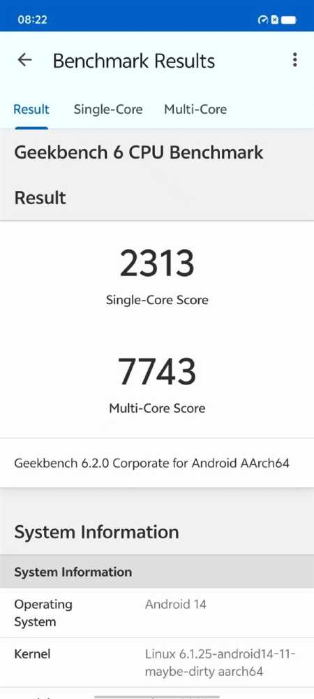 vivo产品经理韩伯啸分享的图片显示,这款新机在Geekbench上的跑分表现更为出色,单核跑分达到了2313分,多核跑分更是攀升至7743分。