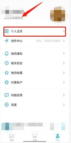2、然后找到【个人主页】,或者点击自己的头像。