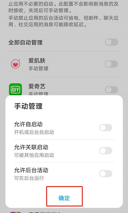 第三步、选择需要关闭的应用,也可以选择【全部自动管理】,一键关闭和开启