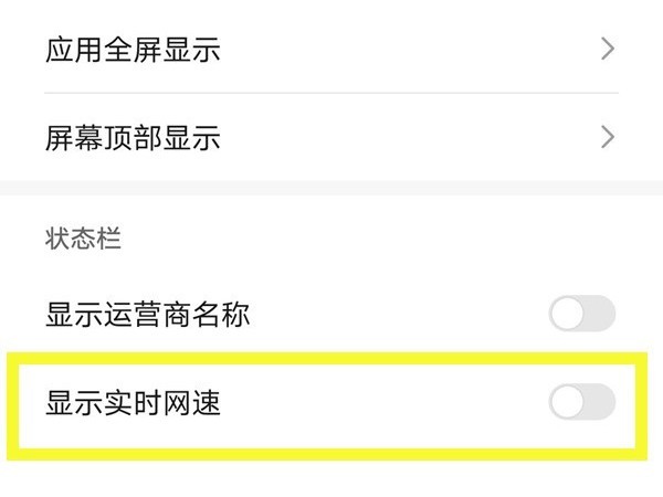 3、将【显示实时网速】右侧的开关开启即可。