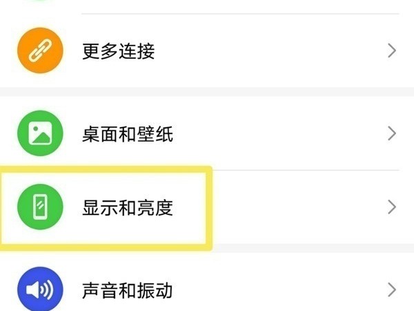 1、在手机设置中点击【显示和亮度】。
