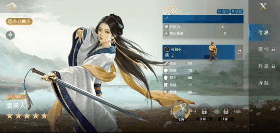 虞美人的定位是治疗、辅助,单看属性方面确实不太给力,只有智力稍微高点,有86,其他属性都被同定位的兵圣、尤里乌斯碾压,攻击距离也只有2,从这方面来看确实不太具有培养的性价比。
