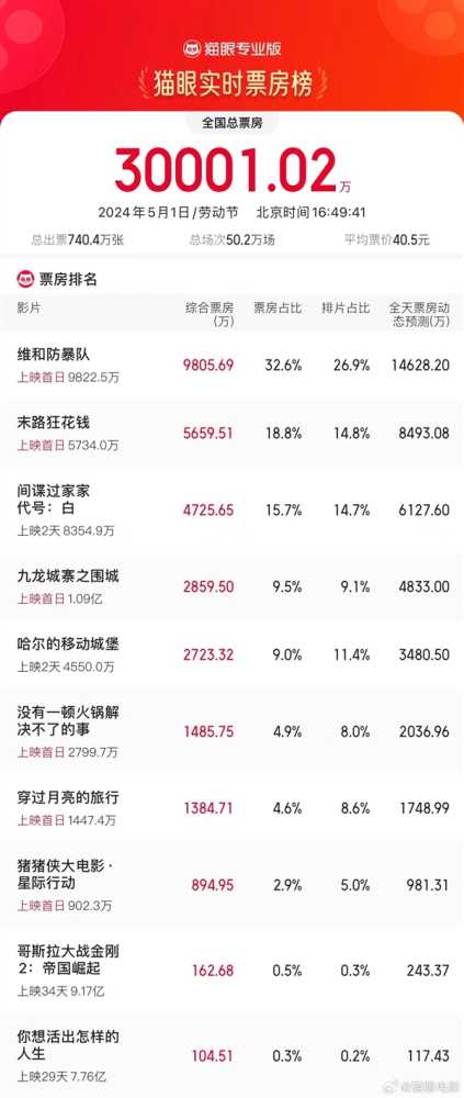 叮当号5月1日消息,五一档电影正在热映,不过相比于往年同期,今年情况并不乐观。