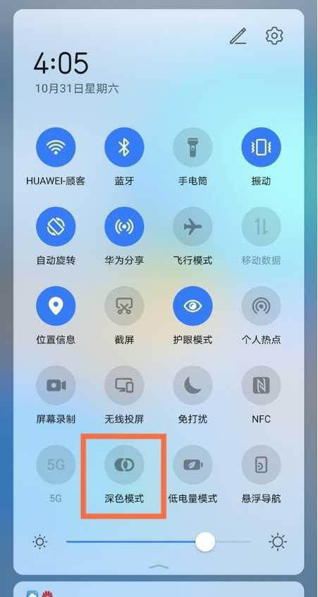 也可以直接从屏幕顶端下拉滑出控制中心,点击【深色模式】关闭。