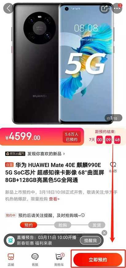 据官方标明,华为mate40e将于2021年3月18日上午10:08正式开售。并且已经于3月10日18:08开启了预售渠道,想知道怎么预约购买?就继续往下看吧!