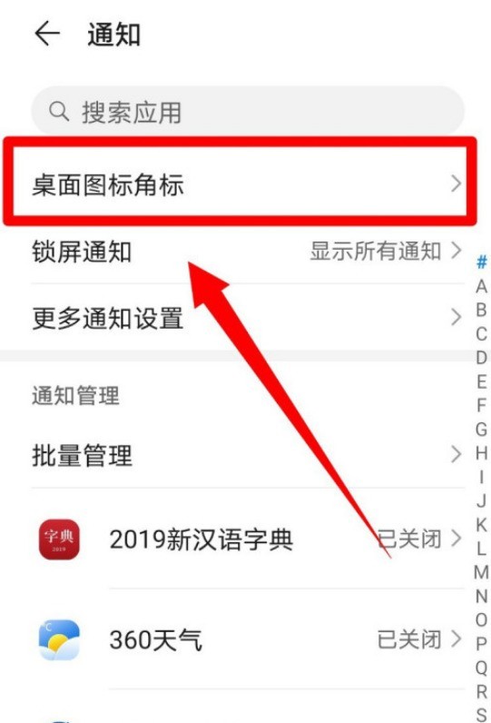 3、在通知栏里面找到桌面图标角标,点击进入。
