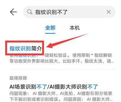 4、之后,在搜索结果里点击指纹识别简介。