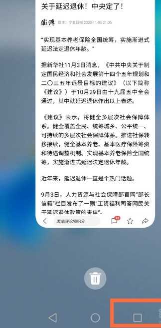 1、从屏幕底部中间位置上滑并停留1秒(手势导航时)或者点击屏幕下方的方块键(虚拟导航键时),呼出后台应用。