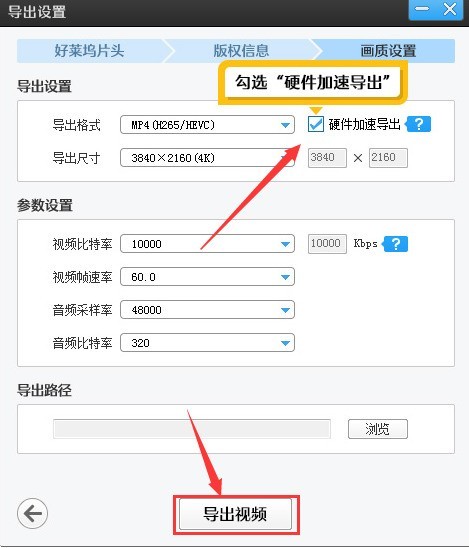 3.接着,在导出设置中勾选硬件加速导出按钮即可