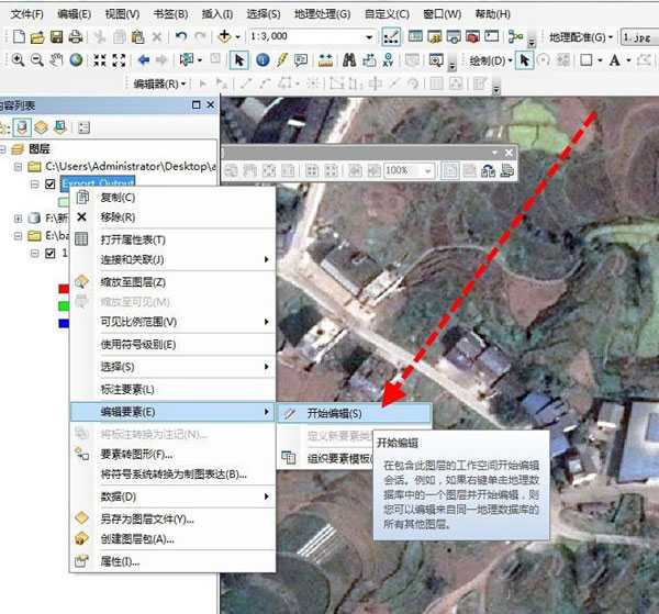然后,开始编辑矢量数据,右键点击数据——编辑要素——开始编辑。