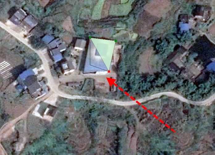 然后,使用鼠标根据栅格影像中的地物形状进行描绘,一般就是在拐点处添加节点(点击鼠标左键即添加节点),描绘完成后,双击即可。