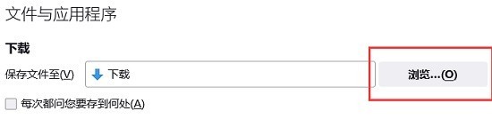 3、在下载选项栏下,点击保存文件选项框后的【浏览】,如下图所示。