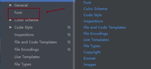 在设置界面,点击左侧的Font选项,如图: