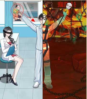 7、点击盖在《鬼门关》牌匾上的黑布拖动到医生上。