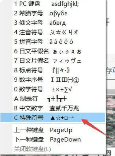 3、这时输入法就会显示一个软键盘,不同按键上有不同的箭头符号,按相应的按钮就会输入箭头符号了。