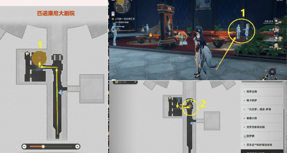 2、上图过完剧情后,会传送到新地图【 匹诺康尼大剧院 】,去1和2任务点过剧情。