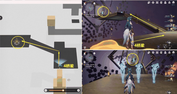 17、从【3桥梁】上来后,继续从【4桥梁】上去,然后去【3酒塔】获得次数。