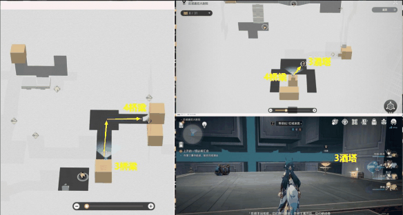 6、从【2桥梁】上来后,接着去【3酒塔】获得次数,然后从【3桥梁】下去。