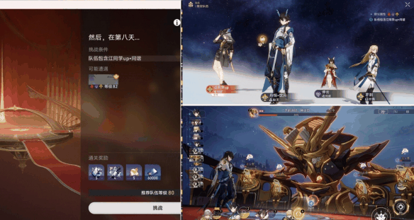21、到任务最后第11阶段【然后,在第8天…】,还需要再打一次新周本boss「齐响诗班」神主日,这次打一段时间后,会出现饮月和景元的联合剧情杀,就是封面图片,然后右边会多出一个R技能,伤害很高,同时注意组好队就行,还有同协主角是必须要带上的。