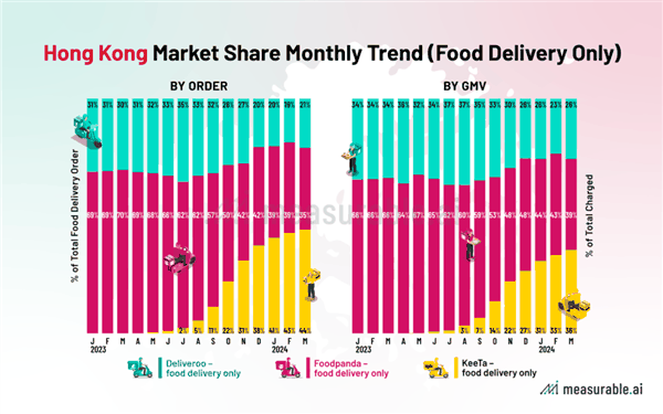 不过我仔细看了下, KeeTa 的这份额是按照餐饮外卖的订单量来算的,而且这还只是 3 月份单月的数据。