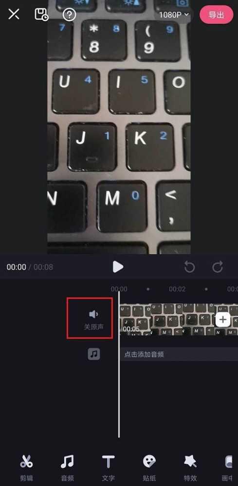 5、点击关原声之后,就关闭视频原声了,根据需要使用。
