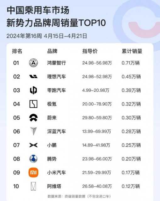 不过2023款展车毕竟有限,随着这些车型逐步售罄,理想汽车的销量也开始回落。易车数据显示,2024年第十六周(4月15日~4月21日),理想汽车销量仅0.45万辆,环比上周暴跌37.4%。