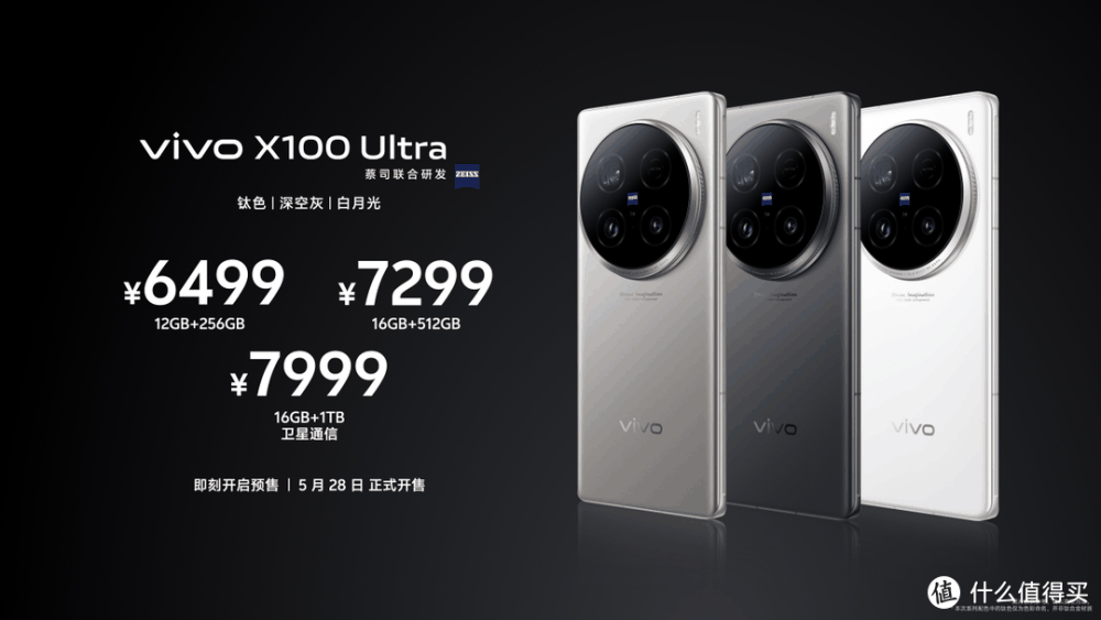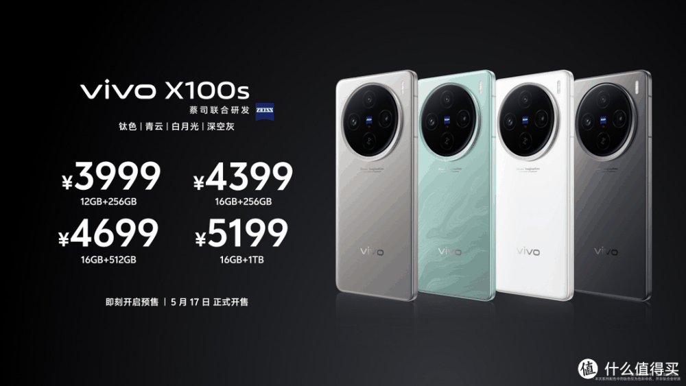 vivo已经连续三年稳坐国产手机销量第一。今年Q1,vivo持续保持了第一成绩,满分旗舰X100系列功不可没。在vivo X100、vivo X100 Pro持续热销收获好口碑之时,vivo此次升级发布了vivo X100s、vivo X100s Pro和vivo X100 Ultra三款新品。作为vivo史上首个Ultra,vivo X100 Ultra搭载蔡司2亿APO超级长焦和一英寸云台级主摄,不断拉高移动影像标准。vivo X100s凭借7.80mm超薄直屏设计、旗舰级影像体验及天玑9300+强悍性能支持,成为2024年直屏旗舰新代表。全新发布的vivo X100s共有青云、钛色、白月光、深空灰四款配色,起售价3999元;vivo X100s Pro共有钛色、白月光、辰夜黑三款配色,起售价4999元;两款新品将于5月17日正式发售。vivo X100 Ultra共有钛色、白月光、深空灰三款配色,起售价6499元,将于5月28日正式发售。