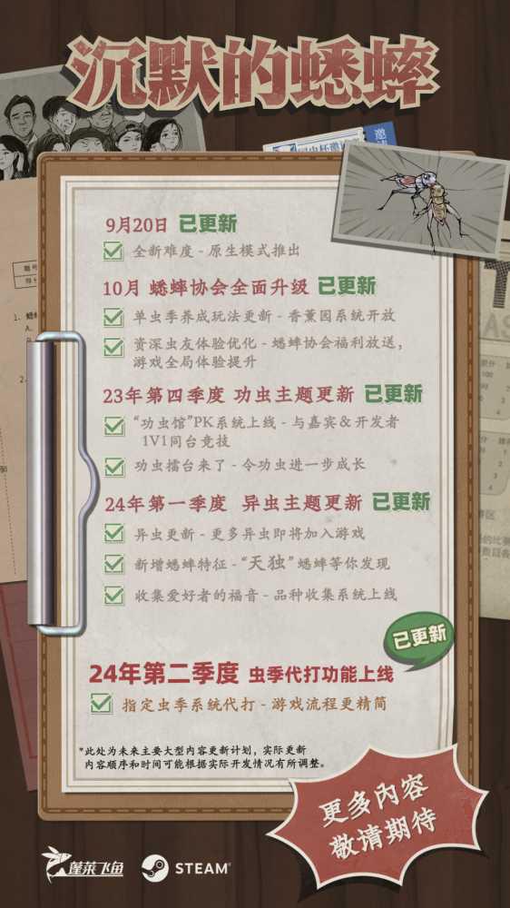 经历了制作组诚意满满的五次重大更新后,《沉默的蟋蟀》不断补足短板,游戏内容更完善。