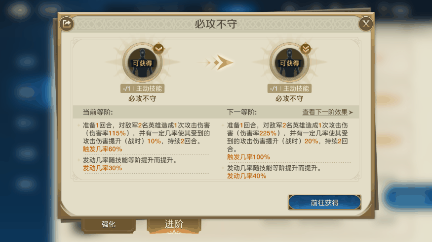 这两个技能都是AOE伤害,必攻不守还可以提升敌军受到的伤害,再补上战无不克对随机1名敌军的二次伤害,很容易就会直接送走对面起码一名英雄。