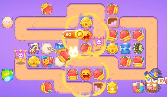 2、给炮台的兔子需要及时打掉,然后获得各种炮台,用这些炮塔能清理障碍物。