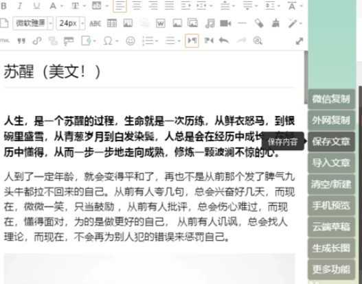 然后我们先保存好我们排好的文章。右边工具栏选择【保存文章】。