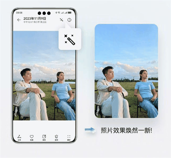 我们在日常拍照的时候,经常会出现多人合影人脸不清晰,或者远景拍摄细节噪点多的情况。如果用第三方修图软件手工处理,不仅费时费力,而且未必能达到想要的效果。这时候,使用华为Mate60系列搭载的AI云增强功能,就能一键获取美丽“魔法”。