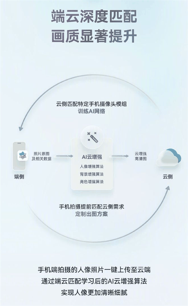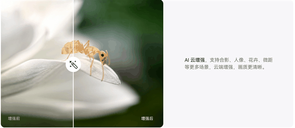另外,云端还能匹配特定手机摄像头模组来训练,训练AI网络,手机拍摄提前匹配云侧需求,定制出图方案,进而形成正向循环,让AI云增强越用越好用,图片的优化效果也更加出色。这显然是一般的P图软件难以比拟的。