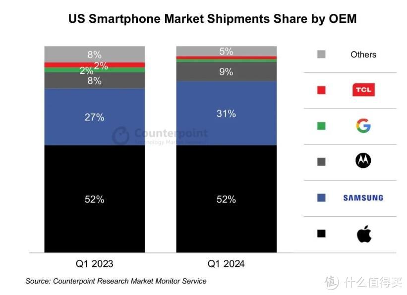 近日,Counterpoint Research 发布了一季度美国智能手机市场数据。