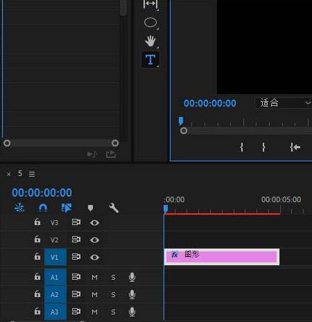 2、鼠标移到节目面板,在文字工具这里点一下,激动文字工具,在面板中点击一下。