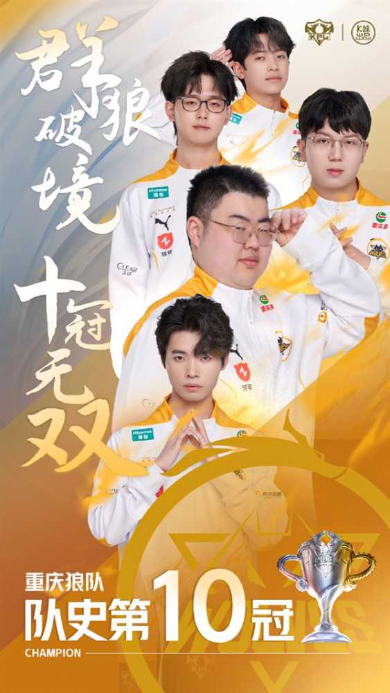 重庆狼队也拿下战队第十个冠军!成为唯一一支达成队史十冠的战队!