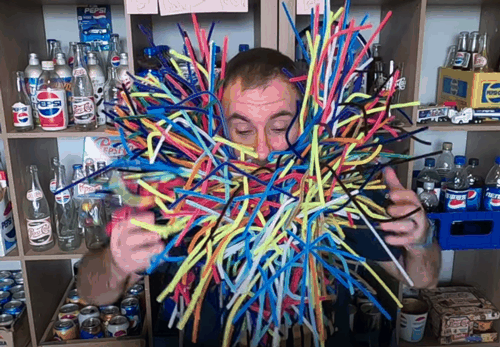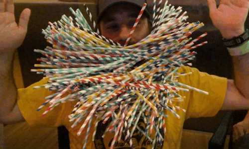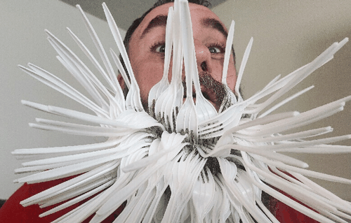 2020年他突发奇想,玩起了纸吸管,在胡子里塞了534根。