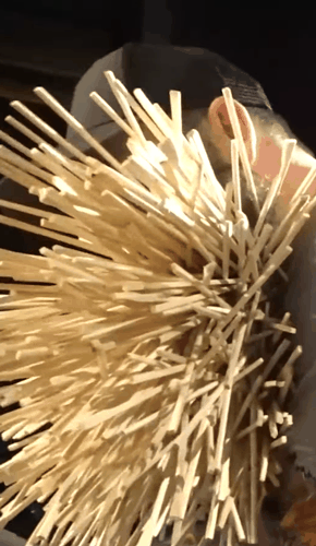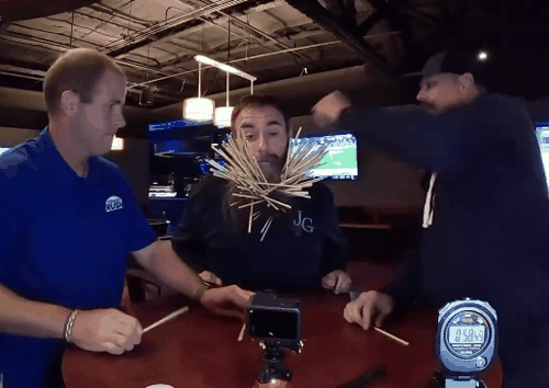 其实在我看来最离谱的是筷子挑战系列,多年前他在自己的胡子里插了520根筷子,创造了世界纪录。