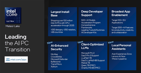 Intel自信满满地表示,得益于Meteor Lake的成功,再加上Lunar Lake的到来,今年将交付超过4000万颗AI PC处理器。