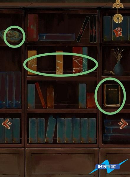 10、将总共获取了四本书,按书上的图案分别放入书柜上(截图慢了,只截到了一部分)。