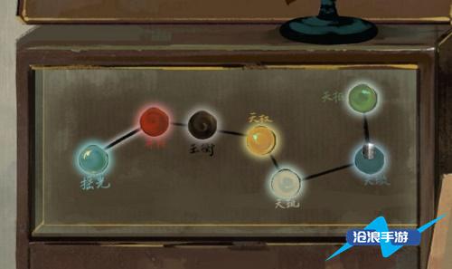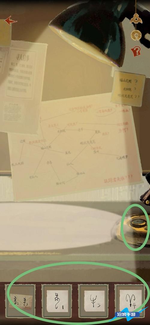19、打开台灯的按钮,并将三个地图碎片分别放在台灯下