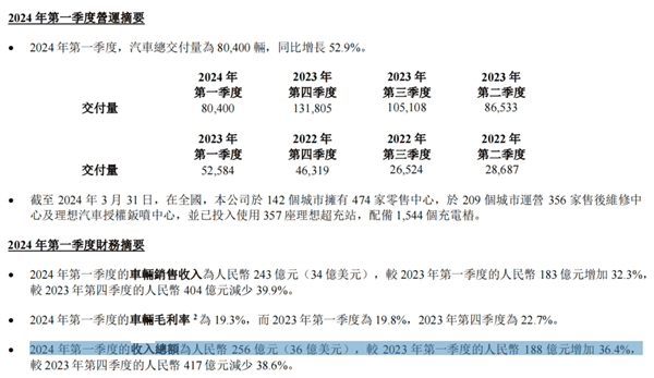 好消息是,跟去年同期比起来,理想多卖了 2.8 万台新车,每个月多卖了接近 1 万台。总的营收也涨了 36.4% ,达到了 256 亿元。一季度就挣了蔚来去年半年的马内,成绩属实有点逆天。