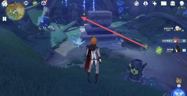 1、首先到这个位置召唤草种子,用弓箭破坏后面发绿光的石头,第五块草方碑就会显示。
