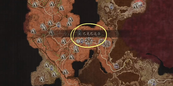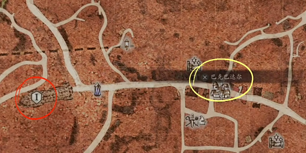 1、首先玩家先在地图上找到“巴克巴达尔”区域的位置处,我们需要抵达的具体目标就在其左边的平台上,也就是其“红色的标记区域”位置。
