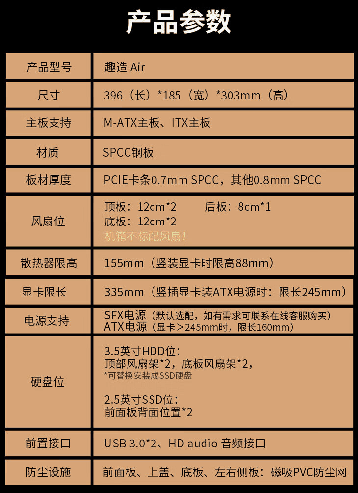 本站附机箱参数信息如下:
